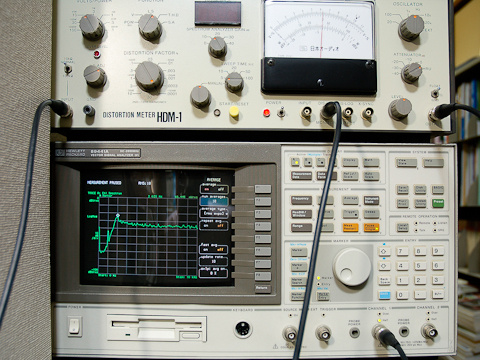 次にひずみ率ですが狙い通り超低ひずみを得る事が出来ました.THDの値はひずみというよりほぼ熱雑音です.10kHzの3次ひずみは熱雑音以下で測ることが出来ませんでした.さてこの様な超低ひずみを測る方法ですが,弊社には市販品としては世界一の性能を誇る日本オーディオ社のHDM-1というひずみ率計を使用しています.